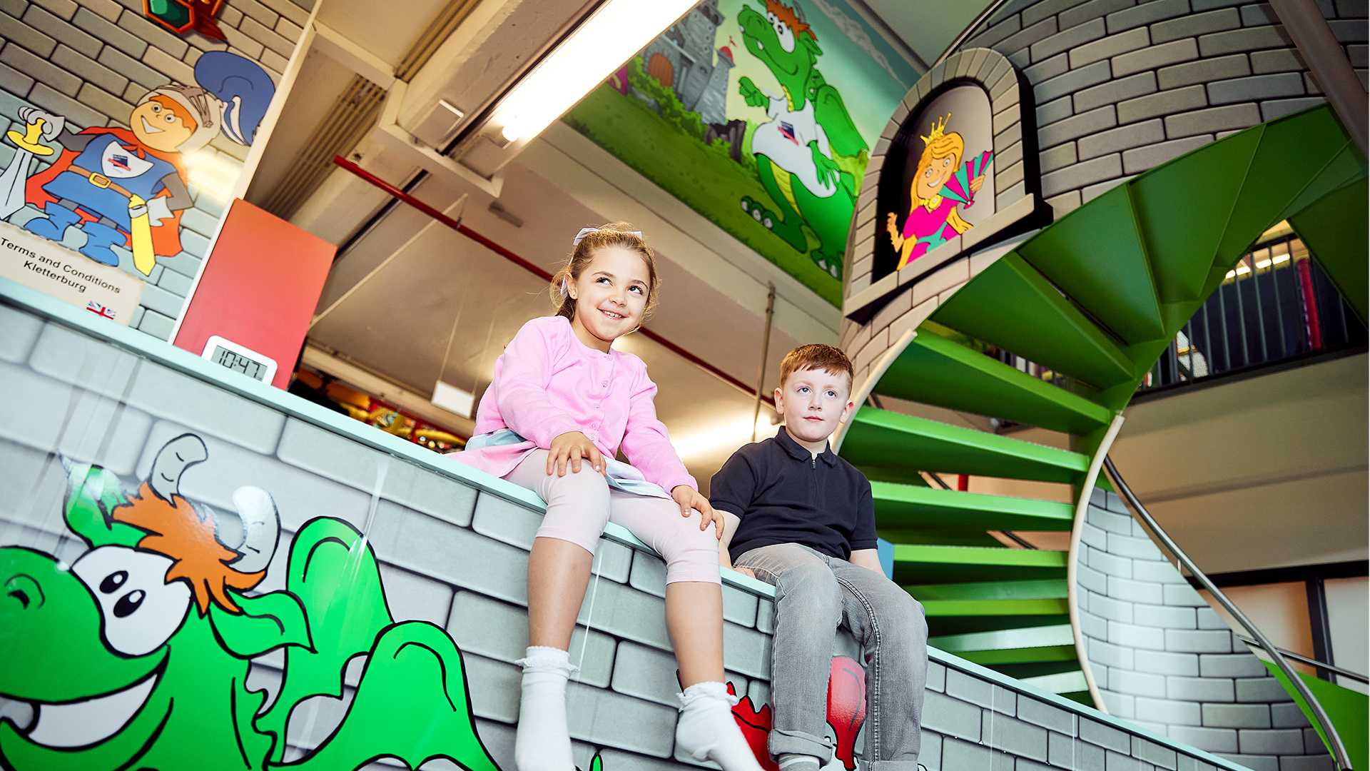 The indoor children's play area offers children ages 4-10 lots of fun on two floors with climbing, balancing, swinging, and sliding - while you relax and stroll through the center.