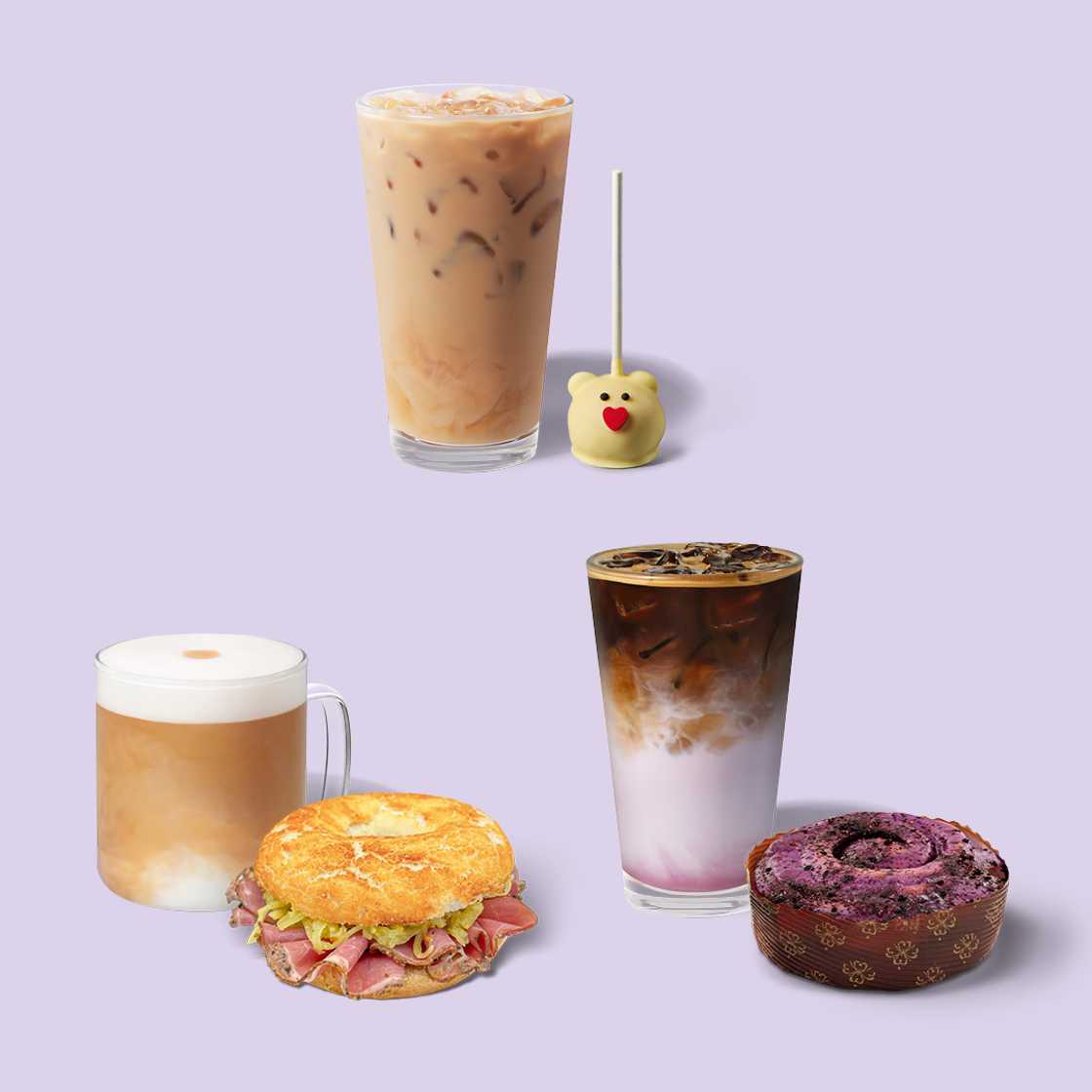 Choose your favorite pairing: A Grande Core Drink* – hot or iced – meets a Cake Pop or Sandwich. Try our new highlight: the Grande* Iced Ube Vanilla Flavor Macchiato with the sweet and fruity UBErry Cinnamon Roll.