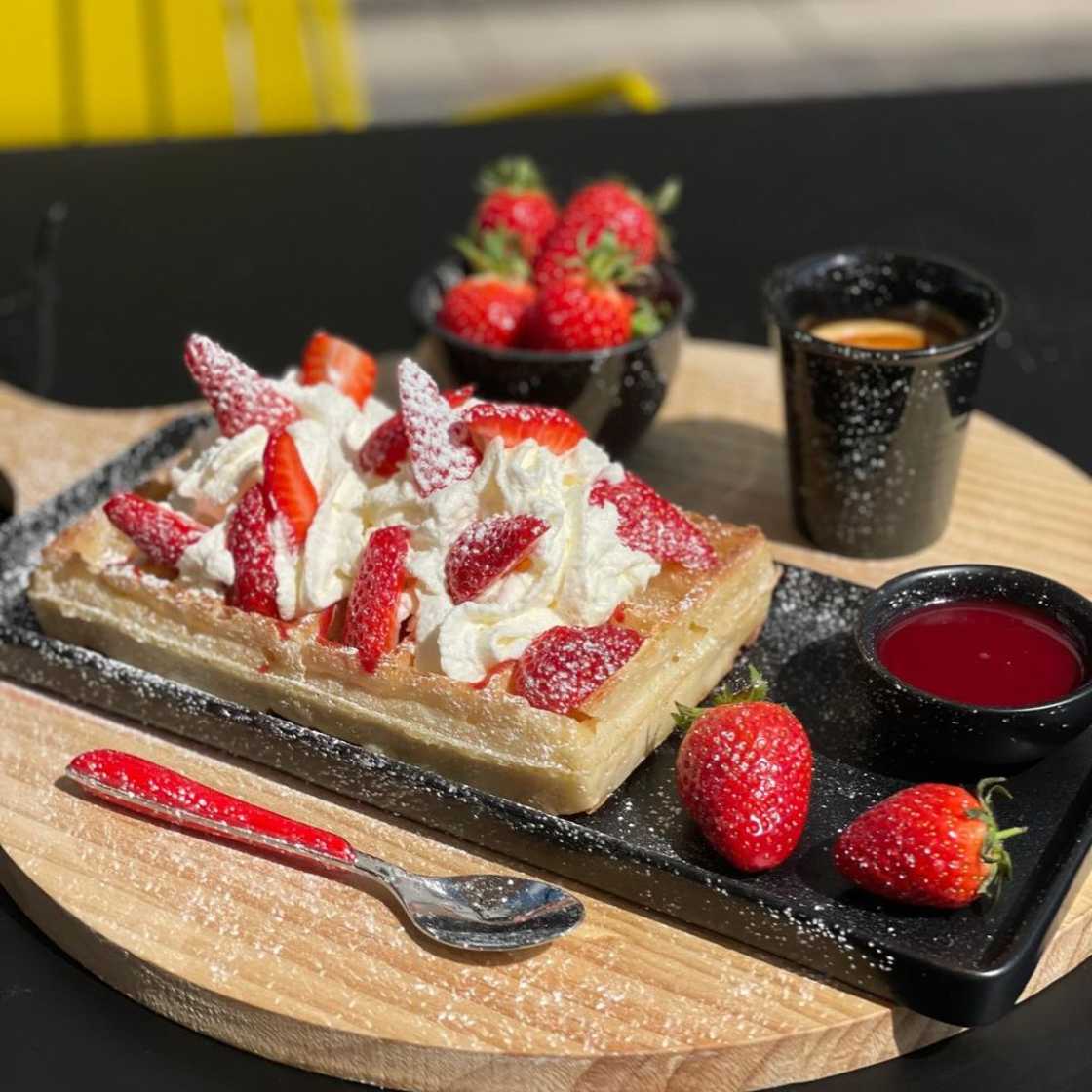 Browse our menu to discover delicious waffles before your visit. Please note that selections may vary.