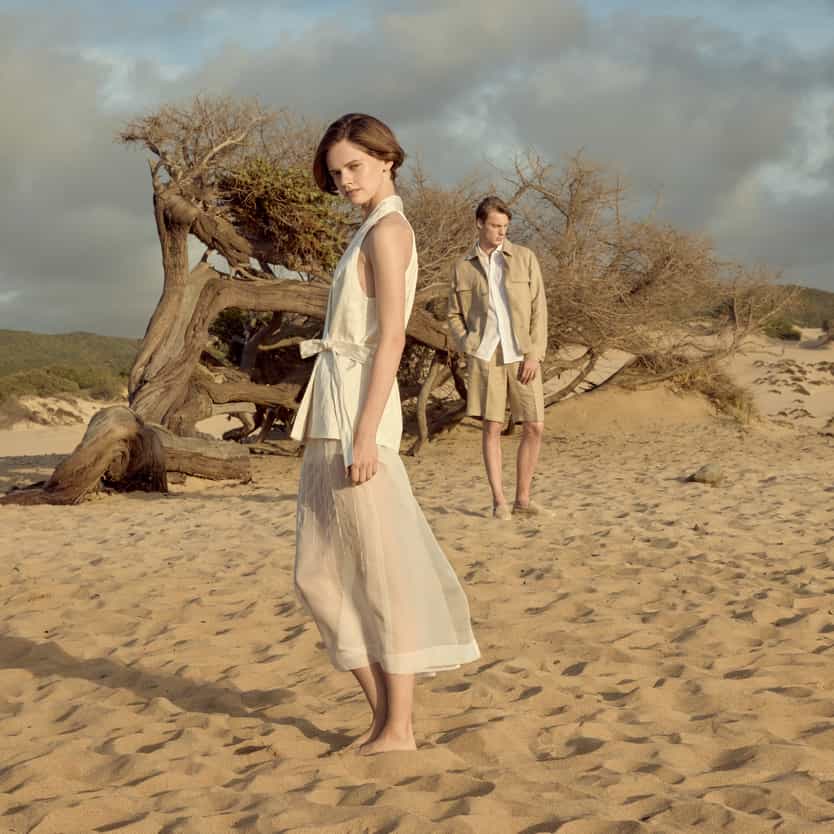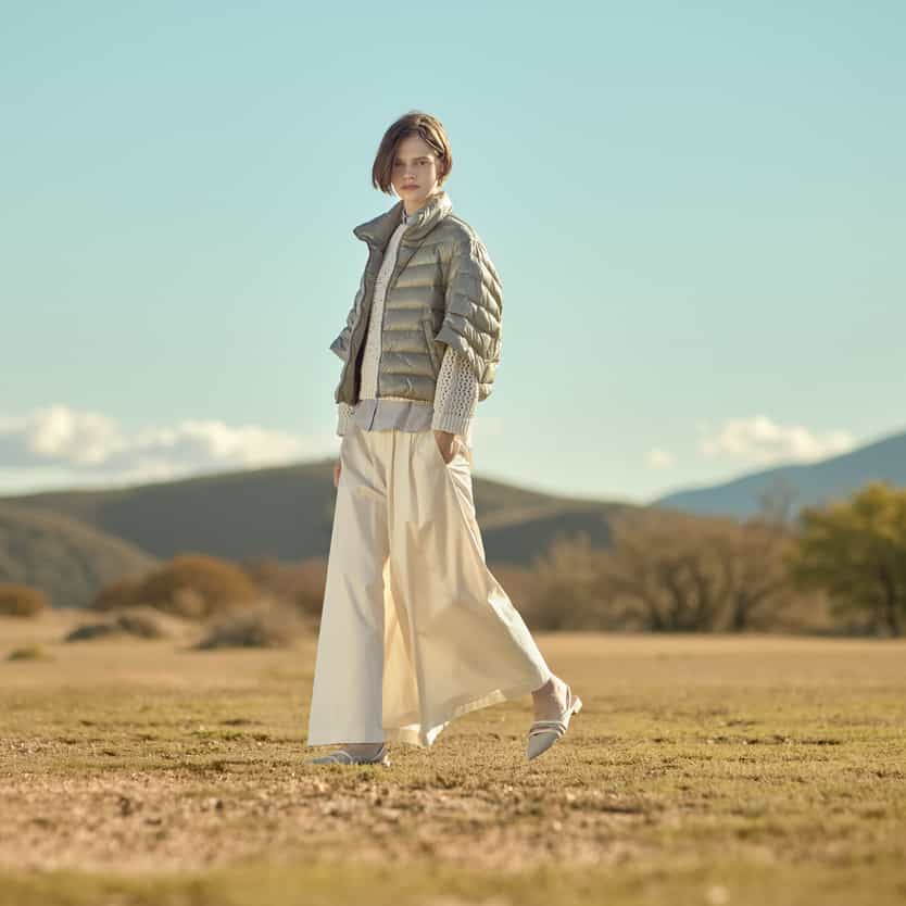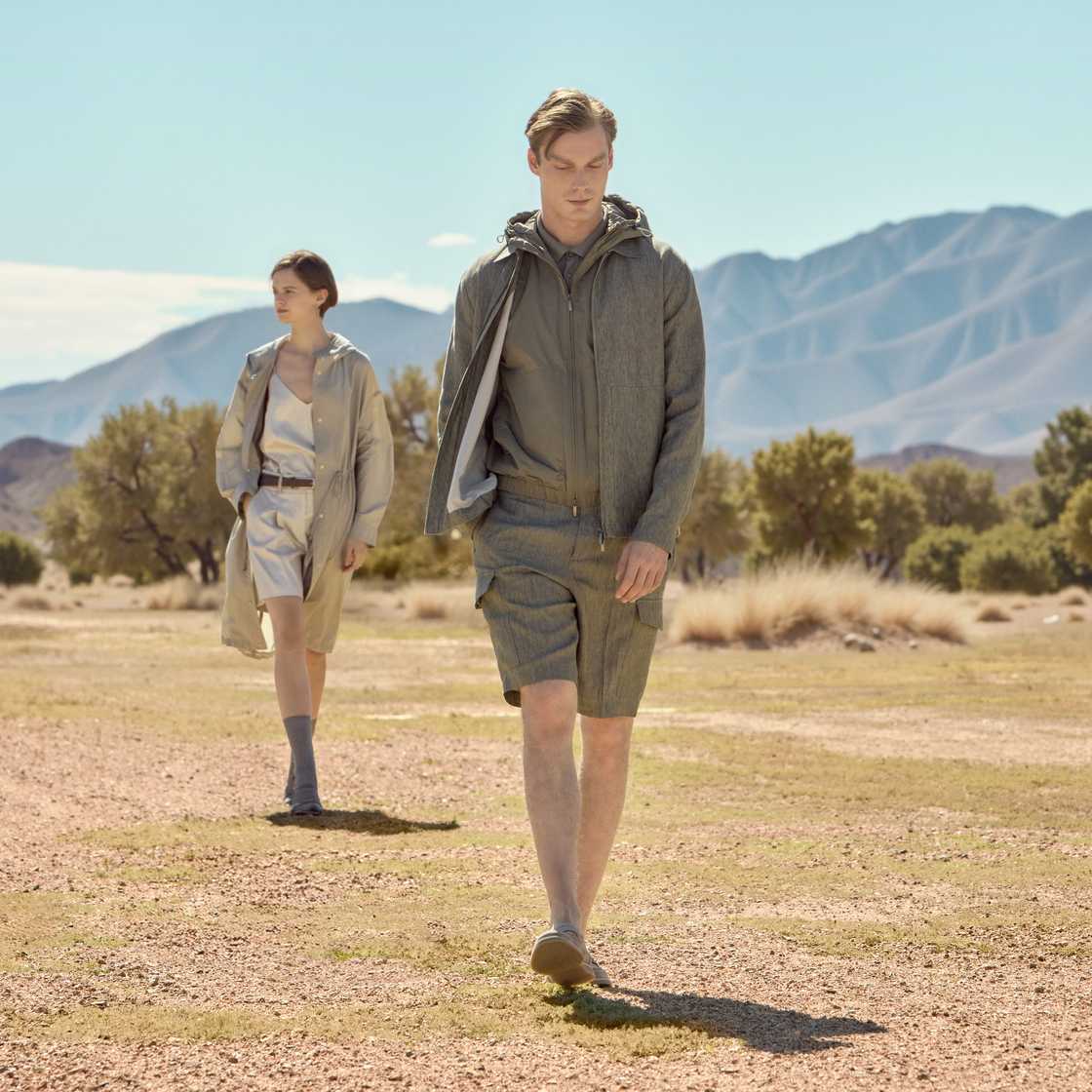 The Peserico's men's collection is now available in store, combining the three different themes of Nomad Gents, Suburban Gentleman and Havana Sands. Technical high-performance wind-proff, water-repellent and softshell garments in shades of navy blue alongside the soft and deconstructed volumes in natural fibers of the Suburban Gentleman and the shades of ocher yellow and ecru in linen and cotton of the Havana Sands theme for a unique and unmistakable style.