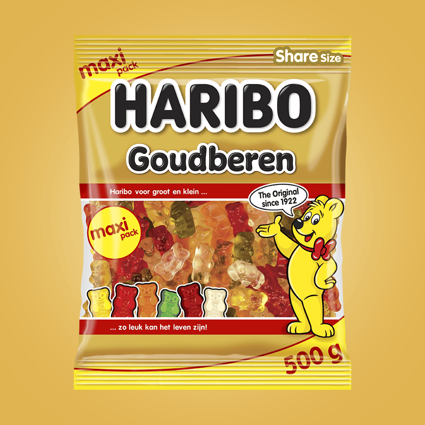 Haribo was founded in 1920 by Hans Riegel. In 1922, he created the “Dancing Bear,” the predecessor of today’s famous “Goldbear.” The bear-shaped candy was an instant hit. Later came the “Golden Bear” with its signature red bow, which still appears on all packaging and merchandise. As more colorful gummy bears were introduced, Haribo grew from a small factory in Germany into a globally loved brand.