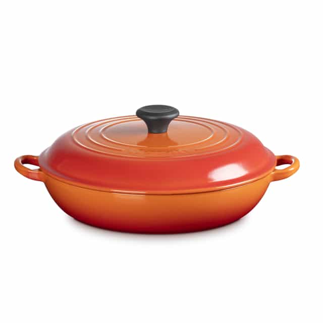 Le Creuset has continued to use the hand-crafted techniques and the original process of forging and casting in the manufacturing of its cast iron for almost 100 years, innovation remains at the forefront of Le Creuset’s success. This attention to its heritage is also characteristic of the design. The Volcanic Orange Le Creuset Casserole still remains an icon of outstanding quality and stylish design, not only meeting the exacting standards of professional chefs worldwide, but also the highest standards of anyone who likes to prepare food at home; time after time.
