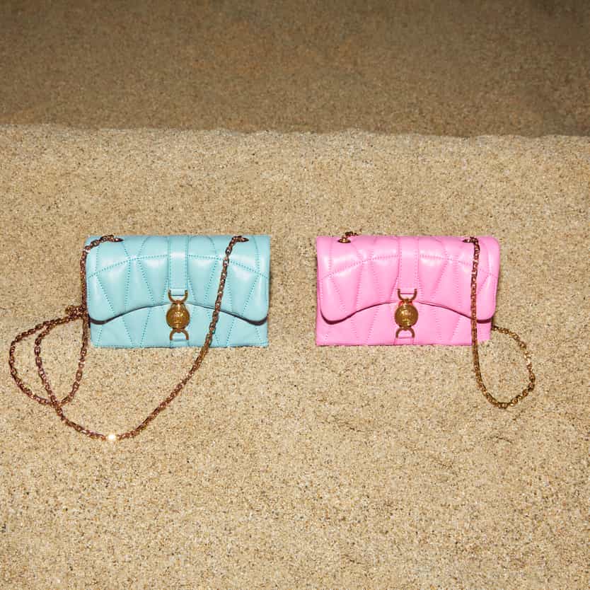 Every print and texture in La Vacanza tells a story of travel, light and water. Soft rippling patterns echo the tide, while structured stripes and polished hardware offer a grounding contrast. Together, they form a collection that captures the charm of a coastal getaway.