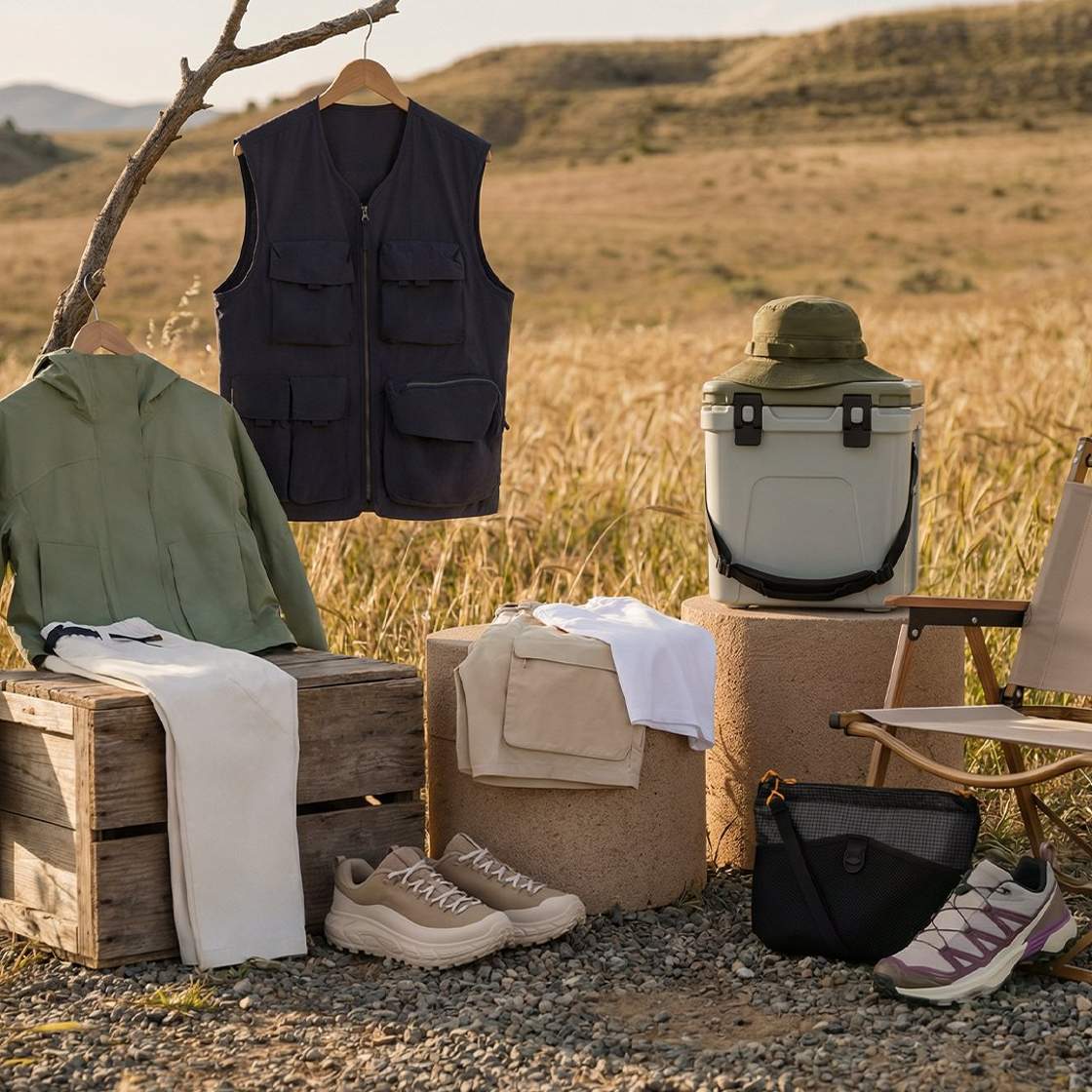 Come for the hiking boots, stay for the camping accessories. If you love adrenaline-packed breaks, our curation of high-performance activewear is for you. Think trail runners from [Brand] and multi-pocketed jackets from [Brand]. Check out versatile hiking pants from [Brand] and [Brand]; and stock up on [Brand]’s layers if you’re aiming for higher altitudes. Don’t forget this season’s sports eyewear and sun-shielding hats, as well as the backpacks just right for your adventure.