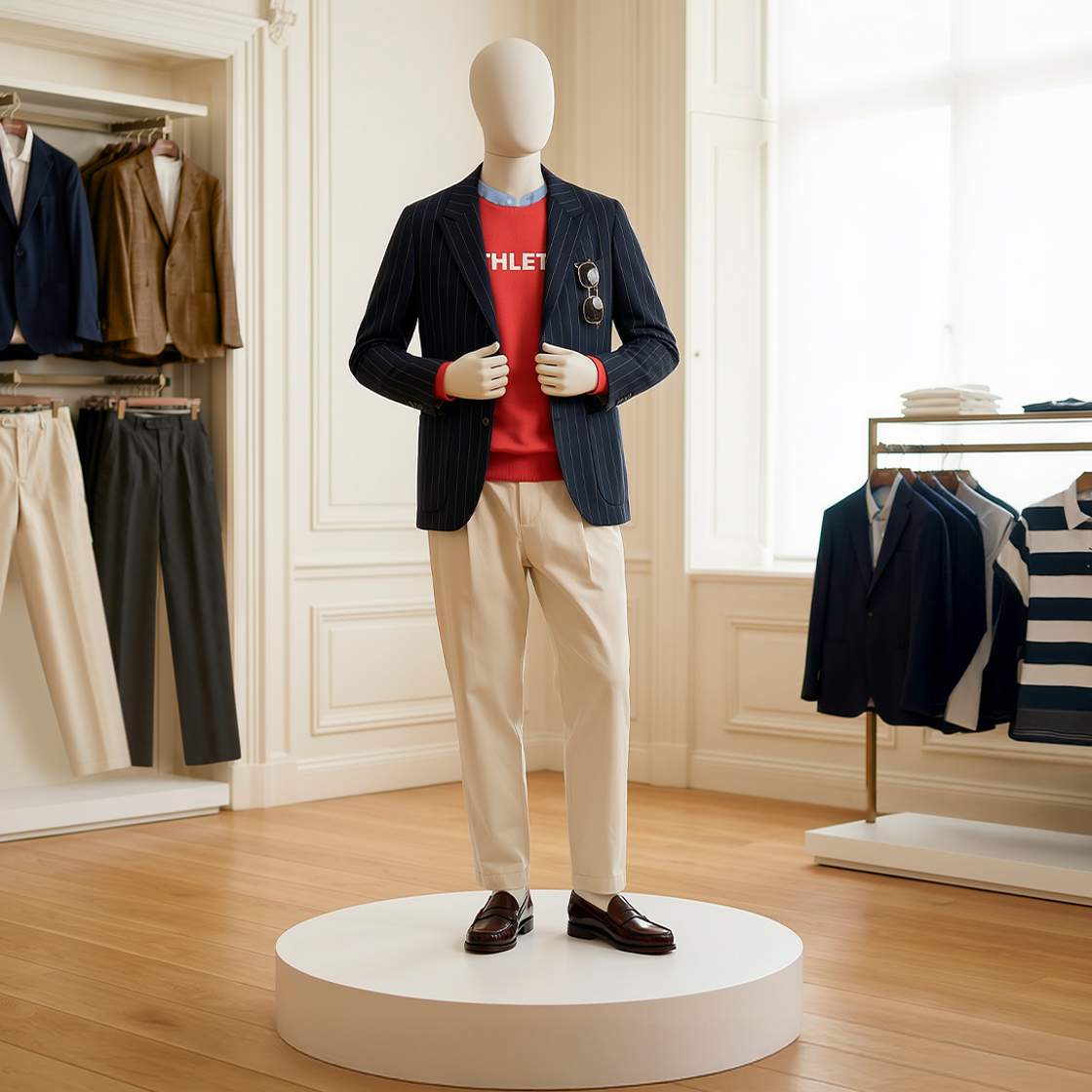 The preppy look is a style as old as time, but new trend Campus Classics adds colour in layers. Key pieces include rugby shirts, cricket jumpers, boat shoes and penny loafers, tailored shorts and chinos, as well as the blazer – all available for up to 60% less at West Midlands Designer Outlet. Deep blues, reds, neutrals and greens are solid options for versatility but a splash of brighter colour works well too (hello, Louis Vuitton and Wales Bonner menswear shows for inspiration). To style into a complete look, try clutch bags or satchels, and bunched cotton socks with your new loafers.